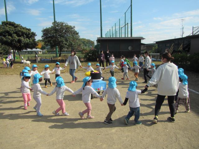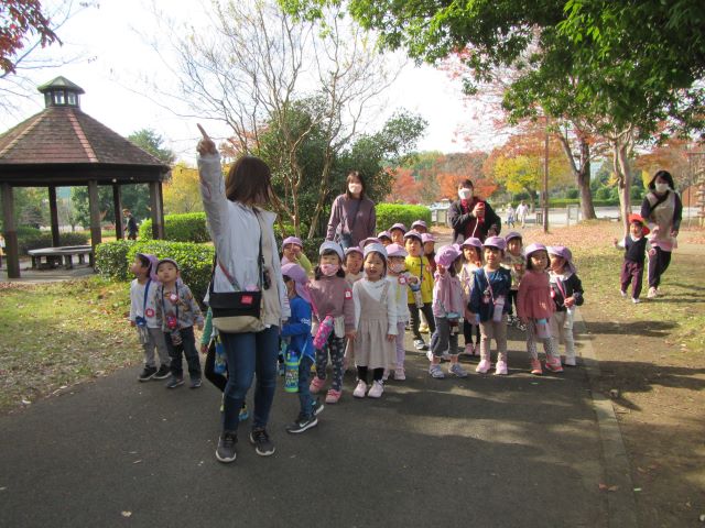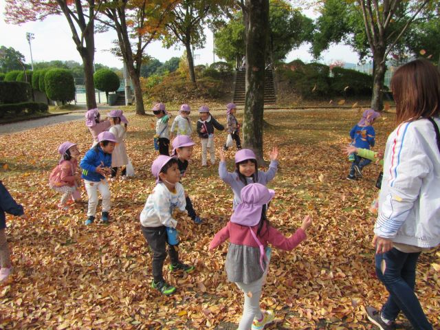 なでしこ組で園外保育に運動公園に行きました!どんぐりを拾ったり、落ち葉で遊んだりと秋の季節を感じながら楽しんできました!