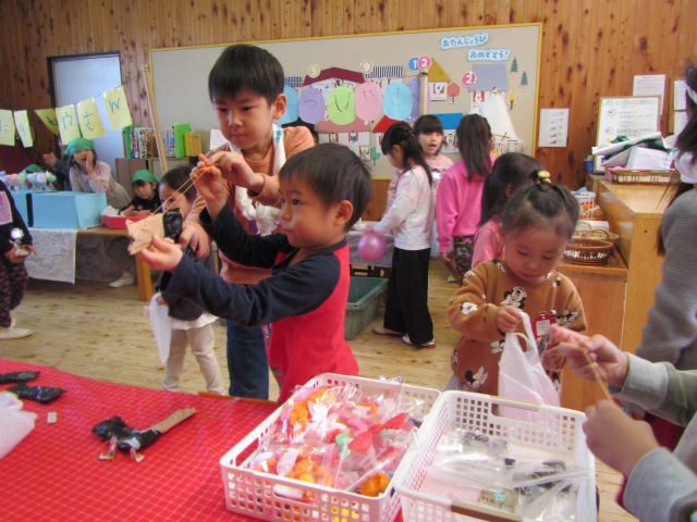 もり組のお店屋さんに行きました!買い物をしたり、お化け屋敷屋さん、射的屋さんと色々なお店を楽しんできました!