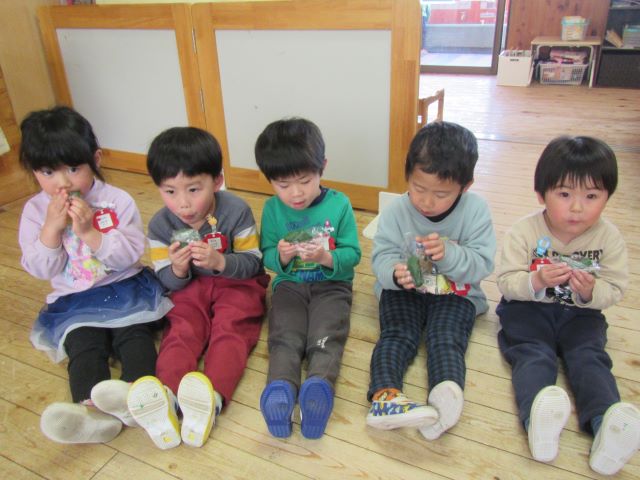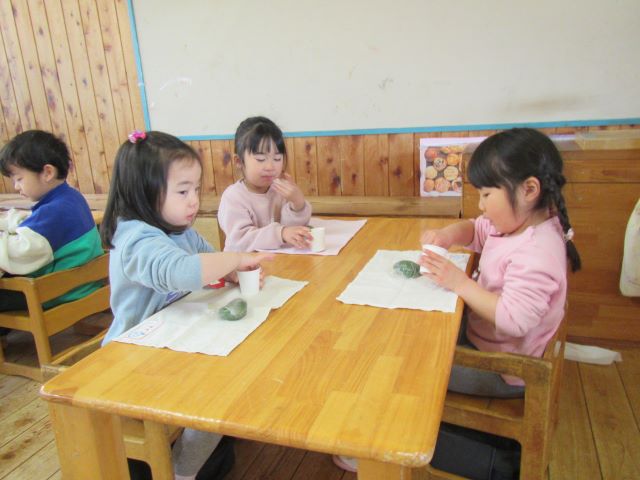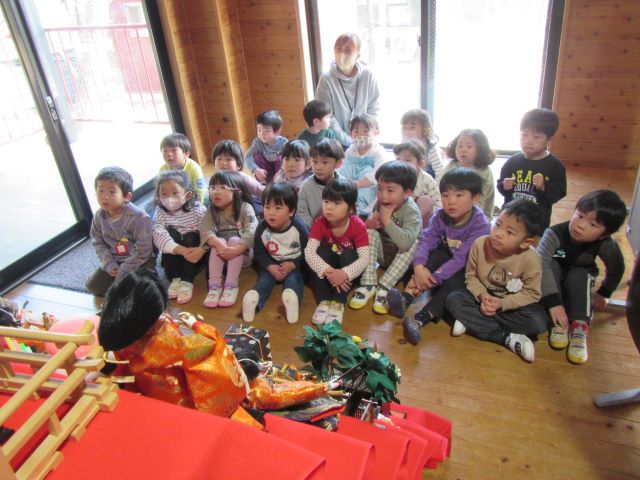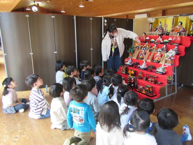 3月3日はひなまつりですね!クラスではひな壇を見に行きました。また、ひなまつりの絵本を見たり、健やかな成長を祈り、ひなあられと草餅を食べました!