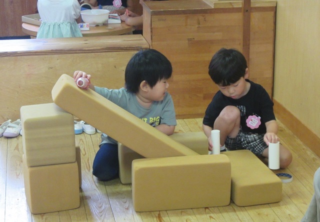 友達に自分のイメージを伝えながら遊んでいます。