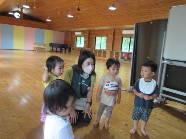 0歳児・・・つかまり立ちをしたり、保育者と一緒に歩いたりとそれぞれのペースで体を動かすことを楽しんでいます。