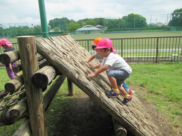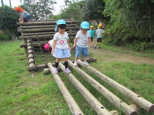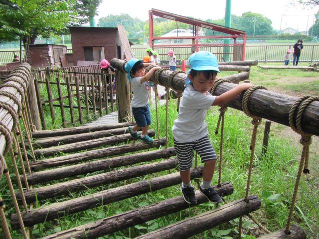 ビオトープのアスレチックにも挑戦!