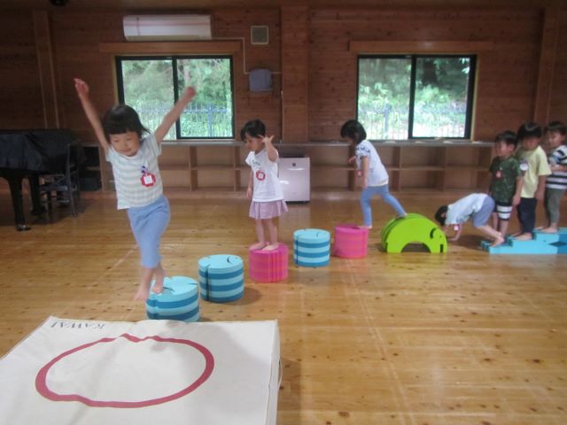 保育室やホールで体を動かして遊んできました♪