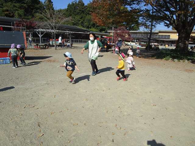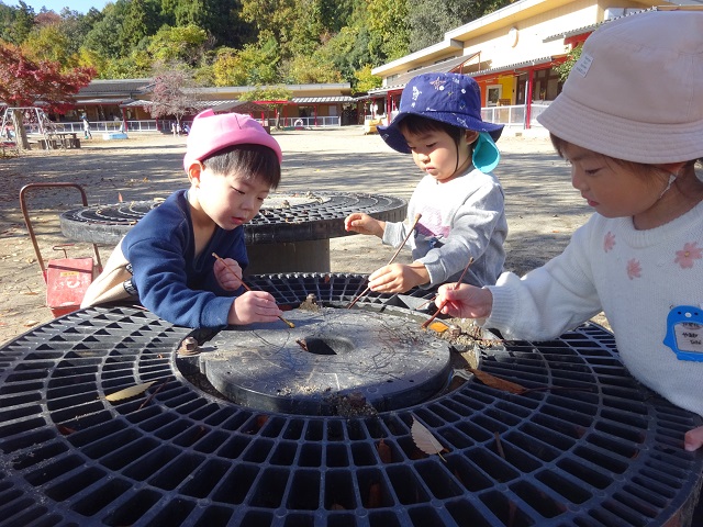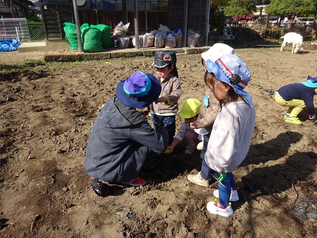 固定遊具に繰り返しチャレンジしたり、芋ほり後の畑を歩いたり走ったり掘り起こしたり・・・戸外で遊ぶ時間を満喫中です♪