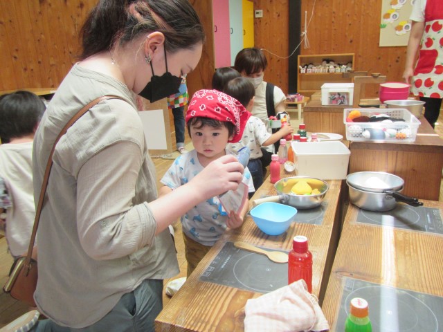 6/25(土)は保育参加でしたね。園で普段子どもたちが楽しんでいる遊びを親子でも楽しんでもらえたことうれしく思っています。今後の保育の中でも、引き続き楽しんでいきたいです。