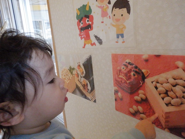 今日は節分なのでオニにもシールをペタペタ♪